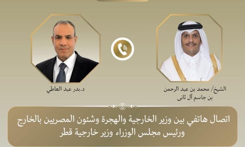 جرى اتصال هاتفي بين دكتور بدر عبد العاطي وزير الخارجية والهجرة والشيخ محمد بن عبدالرحمن آل ثاني رئيس الوزراء وزير خارجية دولة قطر الشقيقة.